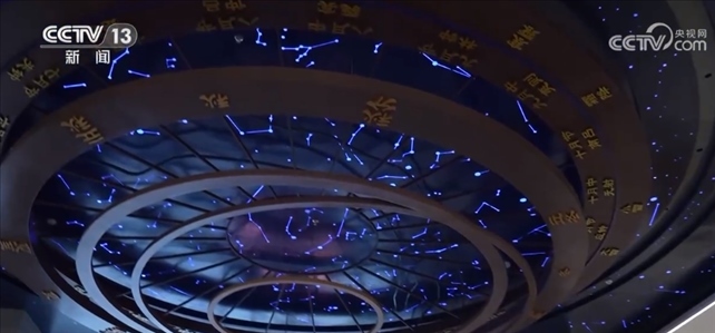 總臺記者 孫銳:一走進(jìn)浙江省非物質(zhì)文化遺產(chǎn)館,我們就能看到,在天花板上懸掛著這樣一個特殊的大鐘表。它是以北斗星為指針,以24節(jié)氣為刻度。同時,在地上還投影有當(dāng)下的節(jié)氣,比如說現(xiàn)在顯示的就是剛剛過去的處暑節(jié)氣。二十四節(jié)氣項目也是人類非物質(zhì)文化遺產(chǎn),它指引著我們按照時令來賞景、品美食。現(xiàn)在我們就從這個節(jié)氣裝置出發(fā),一起走進(jìn)非遺館里的“中國時間”。
