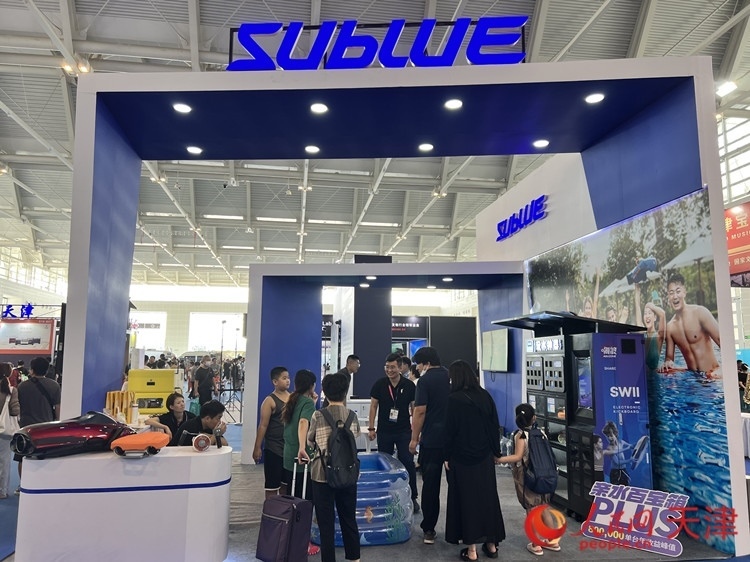 在S1館海洋旅游展區(qū),一陣陣拍打水花的聲音吸引觀眾駐足。