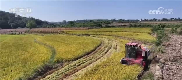 央視網(wǎng)消息:在湖北省當陽市,眼下正是中稻收獲的季節(jié),機械化收割有序推進。