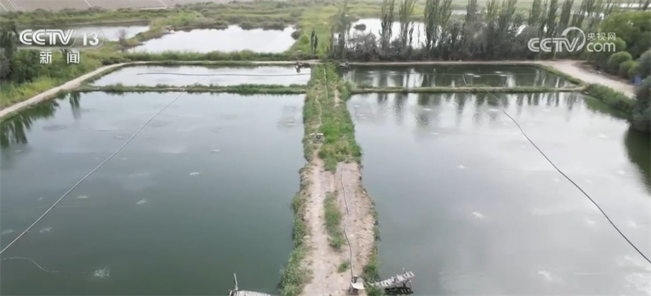 總臺記者 伊力都斯:這里是地處新疆塔克拉瑪干沙漠西北邊緣阿克蘇市的一個“海鮮”養(yǎng)殖基地。你知道嗎,全世界離海洋最遠(yuǎn)的新疆迎來了“海鮮”大豐收,眼下正是鮮蝦上市的時節(jié)。新疆的“海鮮”是怎么養(yǎng)殖的?今天我就帶你探訪新疆阿克蘇市南美白對蝦養(yǎng)殖基地。