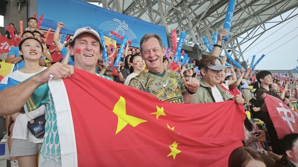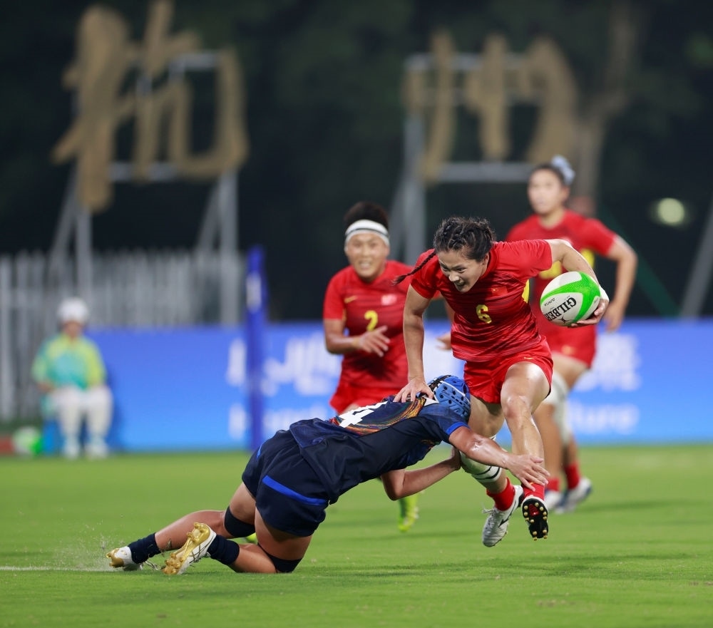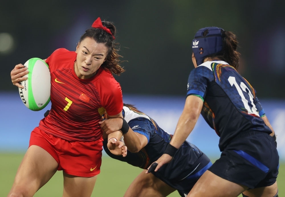 在杭州亞運會的橄欖球賽場上