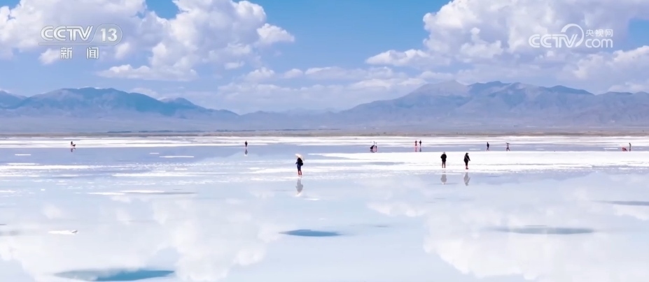 國(guó)慶假期,青海省各大景區(qū)迎來(lái)客流高峰。據(jù)統(tǒng)計(jì),假期前三天,青海湖景區(qū)累計(jì)接待游客5.2萬(wàn)人次。在茶卡鹽湖景區(qū),鹽湖一望無(wú)垠,平靜的湖上倒映著湛藍(lán)的天空。