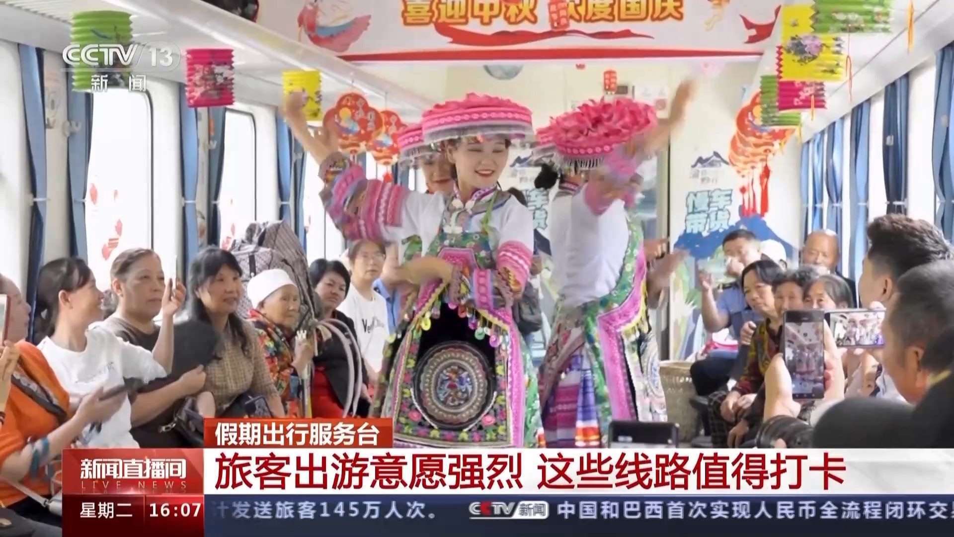 這趟列車(chē)抵達(dá)貴陽(yáng)后,旅客還能轉(zhuǎn)乘不久前開(kāi)通的另一條高鐵線路——貴南高鐵,前往荔波小七孔、瑤山古寨等景區(qū)游玩。為適應(yīng)火爆的旅游客流,現(xiàn)在貴南高鐵每天開(kāi)行76列。此外,針對(duì)假期市民出游意愿強(qiáng)烈,鐵路還開(kāi)行成都至大涼山的“熊貓專列”,貴州遵義至重慶西的“民俗文化慢火車(chē)”。