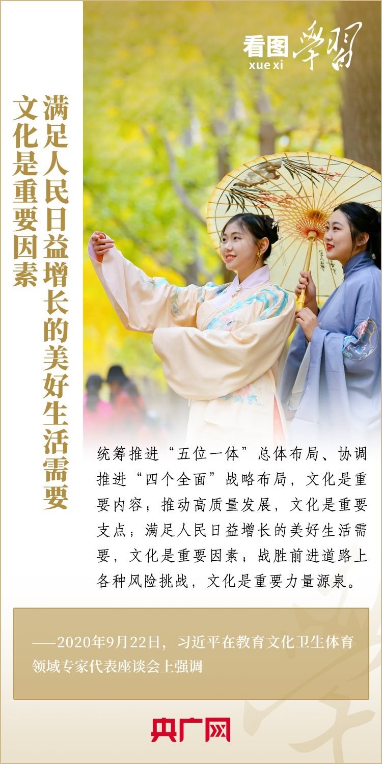 就此,習(xí)近平總書記在多個(gè)場合作出系列重要指示,鼓勵(lì)全社會(huì)通過多種方式為傳承發(fā)展中華文化營造濃厚的社會(huì)氛圍,從而激發(fā)全民族文化創(chuàng)新創(chuàng)造活力。一起來學(xué)習(xí)!
