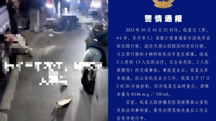 ·江西樂(lè)平警方:醉駕逆行撞傷5人后逃逸男子被刑拘。