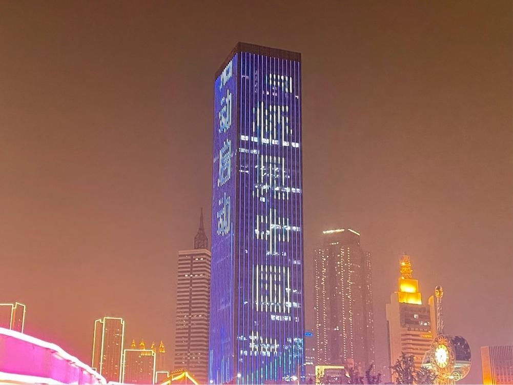 (大廈樓體亮起“橋見中國(guó)”字樣 央視網(wǎng)記者 豆瑞華攝)