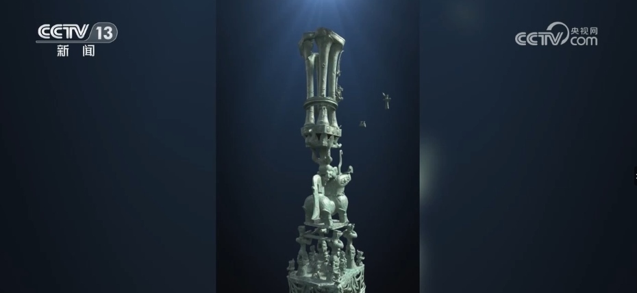 總臺(tái)央視記者 張春玲:很多考古發(fā)掘出來的文物是破碎甚至變形非常嚴(yán)重。頂尊銅人像、大神獸它們分別來自于8號(hào)坑和3號(hào)坑,“跨坑組合”成一個(gè)完整的鼎尊騎獸人像。通過最新的數(shù)字文物修復(fù)技術(shù)和3D打印技術(shù),最終一個(gè)完整組合的器型呈現(xiàn)在了觀眾面前。