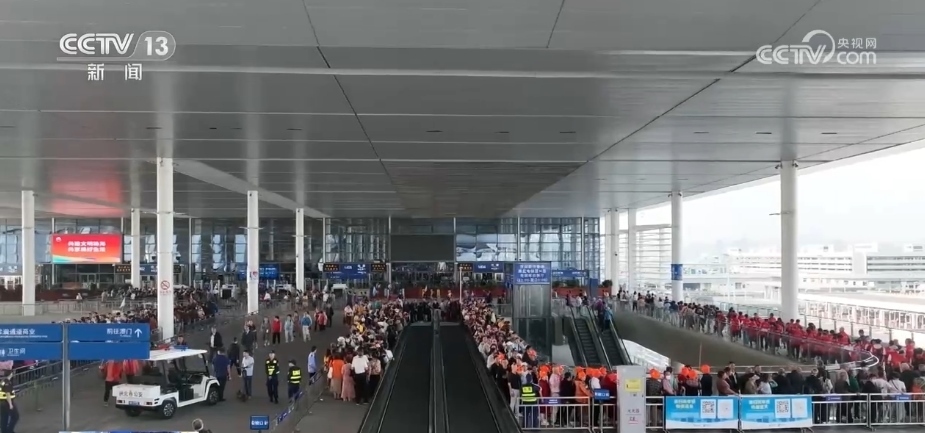 每天早上8時是口岸大廳人流最多的時候,往來珠海、澳門、香港三地的旅行團都匯聚在這里拍照“打卡”,然后再各自出發(fā)前往目的地。