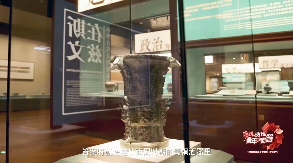 這么多藏品里,哪里能看到最早的“中國”?答案就在這件西周時期的青銅酒器上。它叫“何尊”,早在3000年前,它就有一顆“中國心”。何尊的底座刻有122個古老漢字,記錄了一個小故事。
