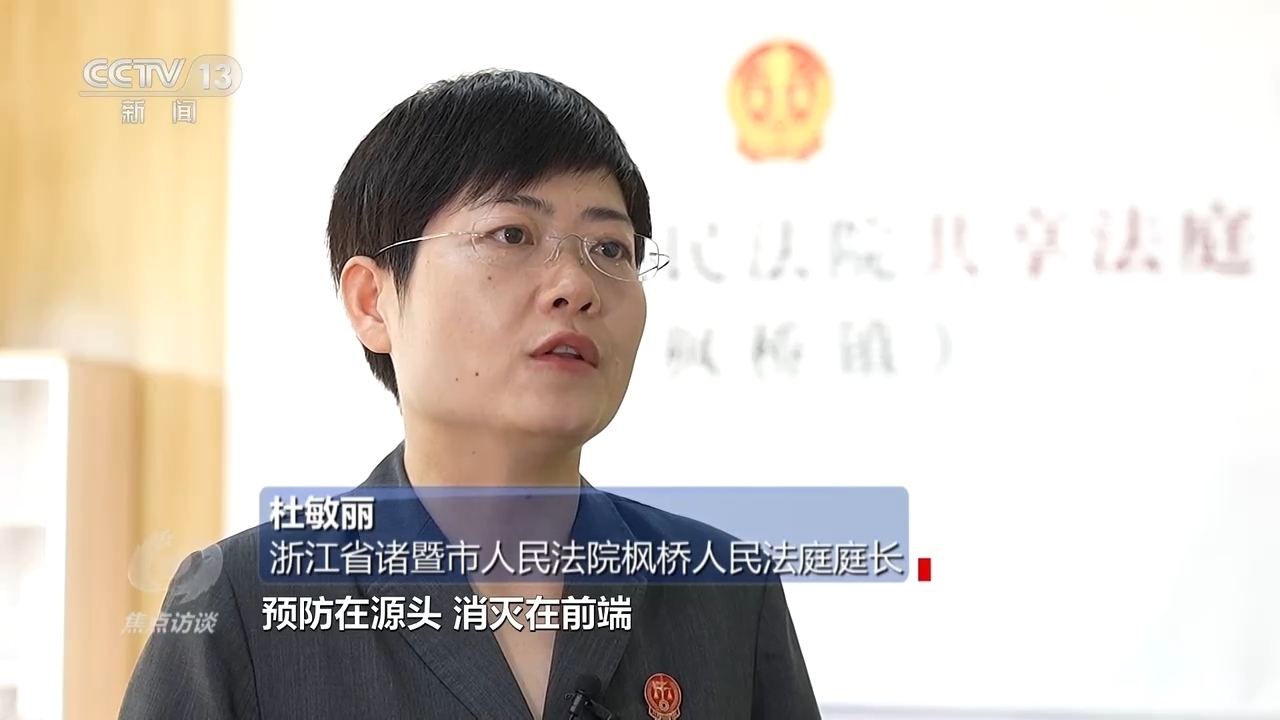 浙江省諸暨市人民法院楓橋人民法庭庭長杜敏麗:“把后端力量移到了前端,把更多矛盾糾紛預(yù)防在源頭、消滅在前端,后面的訴訟相當于案件量也慢慢減少?!?/p>