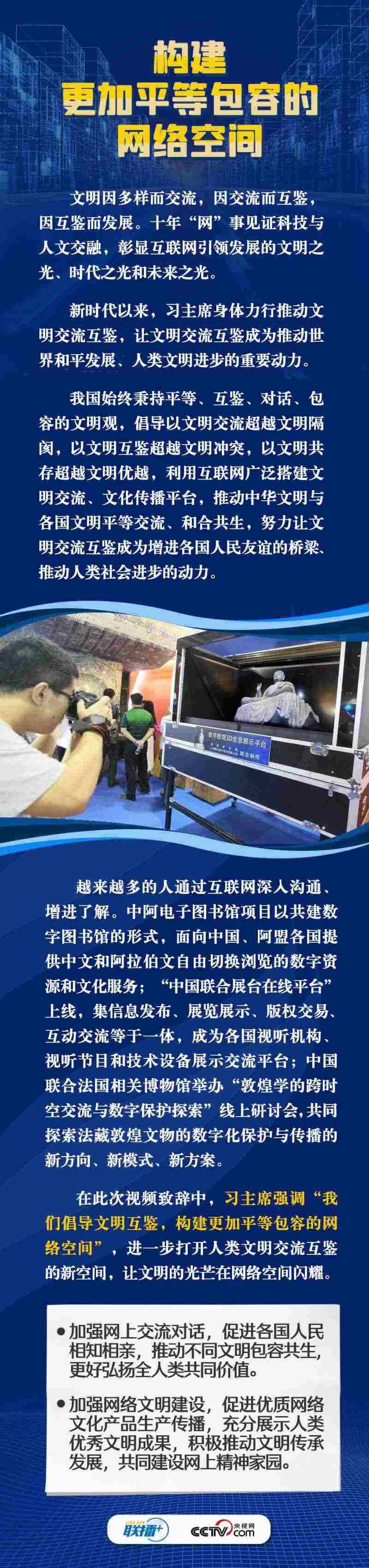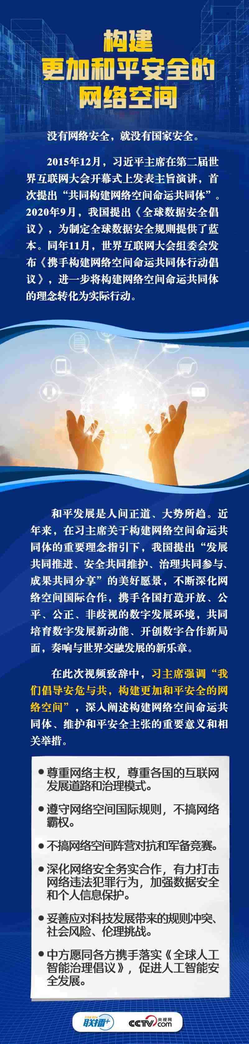 面對新的時代課題,習(xí)主席在此次視頻致辭中倡導(dǎo)構(gòu)建更加普惠繁榮、更加和平安全、更加平等包容的網(wǎng)絡(luò)空間。這三個“網(wǎng)絡(luò)空間”具體內(nèi)容是什么?構(gòu)建網(wǎng)絡(luò)“新空間”有什么具體措施?央視網(wǎng)《聯(lián)播+》與您一同學(xué)習(xí)。