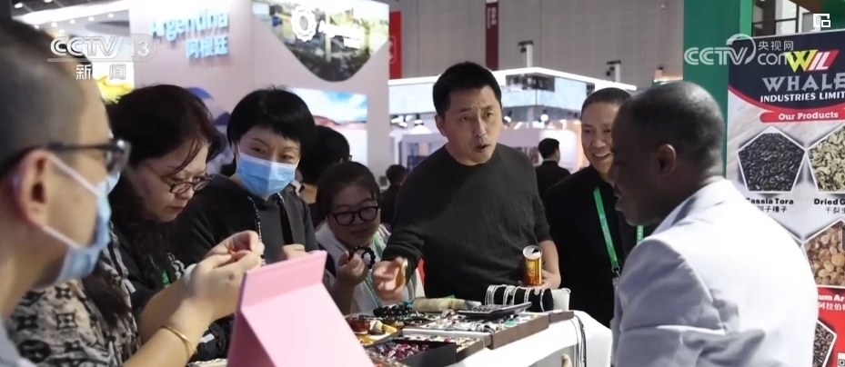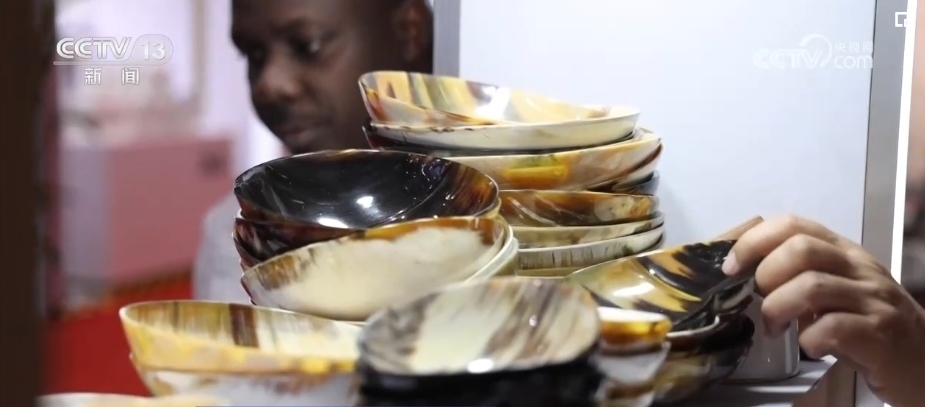 不僅是“回頭客”收獲滿滿,“頭回客”烏干達(dá)商人蒂莫西表示感到十分驚喜。他是第一次來參展,只拿到了3層貨架的展位。但是,來自烏干達(dá)的牛角梳等牛角手工藝品,吸引了不少訪客駐足詢問。