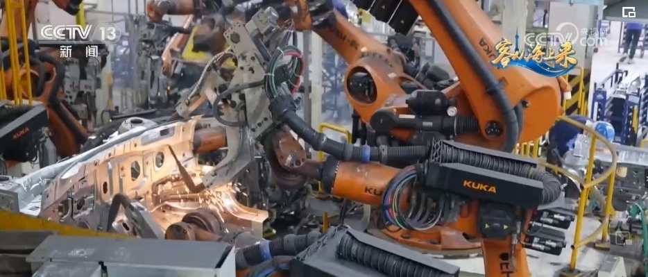 總臺央視記者 高媛:平均每1分鐘就會下線一輛車,在這個智慧工廠里,有1000多臺柔性機(jī)器人實現(xiàn)焊接100%自動化,這樣的智能制造能力就是它高效的“密碼”。