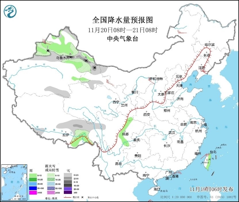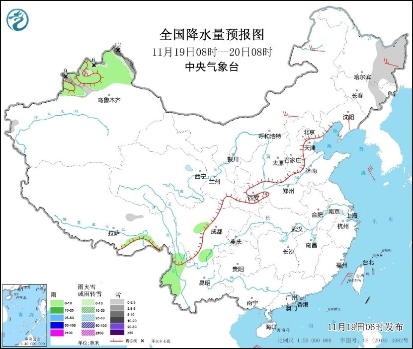 預計,今明兩天,新疆北部等地雨雪天氣明顯。其中今天,新疆北部和伊犁河谷、黑龍江東部、吉林東部等地部分地區(qū)有小雪或雨夾雪,新疆北部部分地區(qū)有中到大雪,局地暴雪(10~12毫米)。明天,新疆沿天山地區(qū)和東部、甘肅西部、內(nèi)蒙古西北部、西藏東部、川西高原北部等地部分地區(qū)有小雪或雨夾雪,新疆伊犁河谷和東部、西藏東北部等地部分地區(qū)有中到大雪(5~8毫米)。