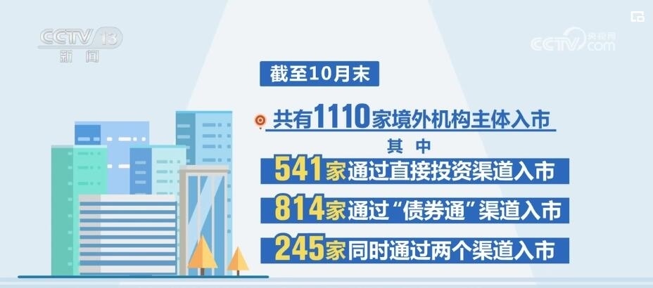 央行上海總部數據顯示,在資金凈流入的同時,銀行間債券市場的境外機構參與數量也在不斷增加,截至10月末,共有1110家境外機構主體入市。其中,541家通過直接投資渠道入市,814家通過“債券通”渠道入市,245家同時通過兩個渠道入市。近年來,我國銀行間債券市場對外開放力度不斷加大,吸引了更多境外投資者。