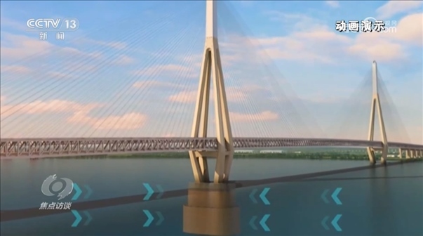 鄭清剛:“鐵路一側(cè)的荷載比公路一側(cè)要重8.6噸,就是每延米有8.6噸,就像兩個(gè)人抬東西,比如一頭重量大了的話,就會(huì)發(fā)生一頭高一頭低的情況。我們是通過一些結(jié)構(gòu)上的辦法,采用不同強(qiáng)度的斜拉索來匹配這個(gè)受力?!?/p>
