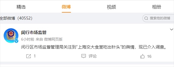·上海交通大學回應“食堂飯菜里吃出1.5厘米針頭”:給豬打疫苗的針斷在骨頭里。上海閔行區(qū)市場監(jiān)督管理局已介入調(diào)查。