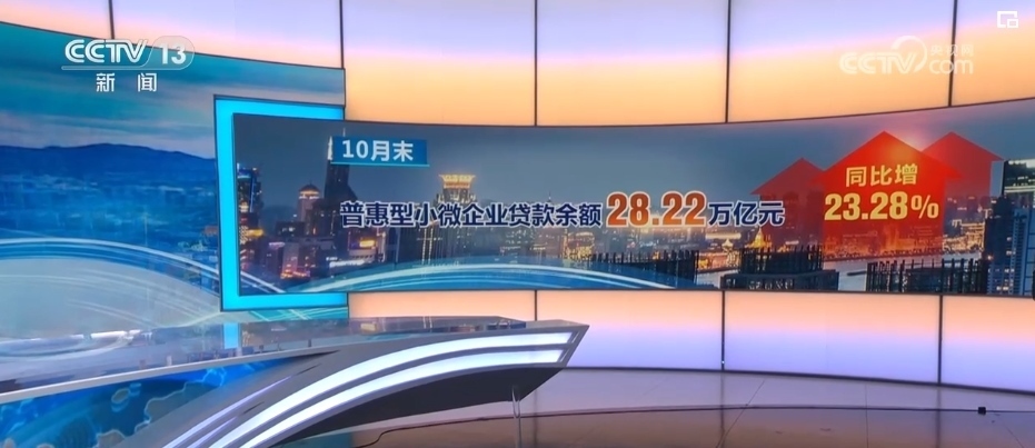 國家金融監(jiān)督管理總局最新數(shù)據顯示,10月末,全國普惠型小微企業(yè)貸款余額28.22萬億元,同比增長23.28%,較各項貸款增速高13.01個百分點。