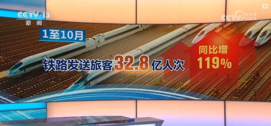國鐵集團最新數(shù)據顯示,2023年前10個月,全國鐵路發(fā)送旅客32.8億人次,同比增長119%。其中,9月份,全國鐵路單日售票量、單日旅客發(fā)送量均創(chuàng)歷史新高。