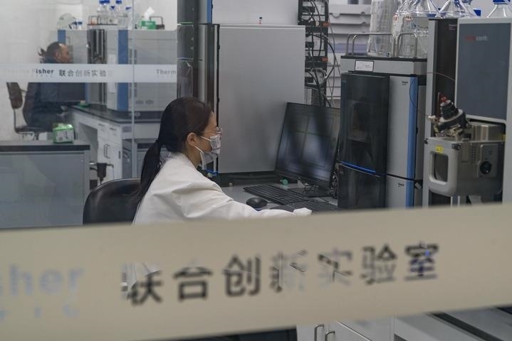 在成都天府國際生物城一處實(shí)驗(yàn)室,研究人員在工作(2023年4月25日攝)。新華社記者 唐文豪 攝