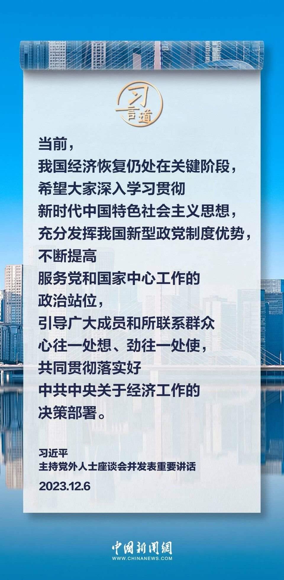 12月6日,中共中央在中南海召開(kāi)黨外人士座談會(huì),就今年經(jīng)濟(jì)形勢(shì)和明年經(jīng)濟(jì)工作聽(tīng)取各民主黨派中央、全國(guó)工商聯(lián)負(fù)責(zé)人和無(wú)黨派人士代表的意見(jiàn)和建議。中共中央總書(shū)記習(xí)近平主持座談會(huì)并發(fā)表重要講話。