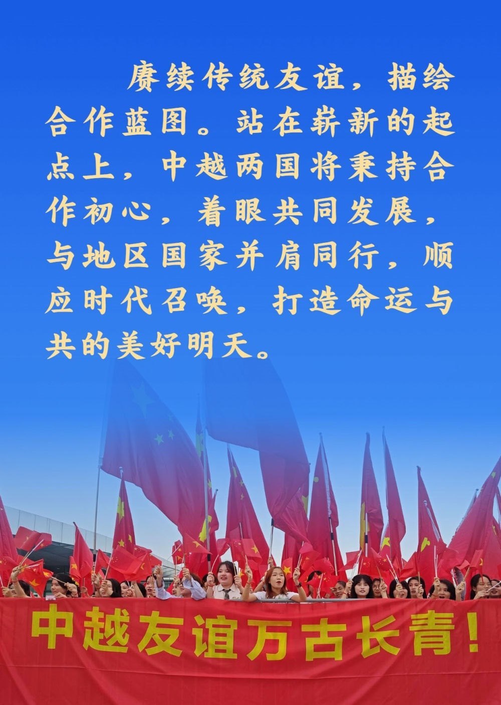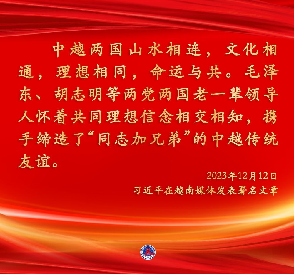 兩位總書記都認(rèn)為,中越作為友好近鄰,理想相同,理念相通。作為好鄰居、好伙伴、好兄弟、好同志,中越構(gòu)建具有戰(zhàn)略意義的命運(yùn)共同體具有天時(shí)、地利、人和的獨(dú)特優(yōu)勢。雙方應(yīng)該繼承老一輩領(lǐng)導(dǎo)人締結(jié)的傳統(tǒng)友誼,共同努力構(gòu)建命運(yùn)共同體,走好各自的現(xiàn)代化道路,實(shí)現(xiàn)互利共贏、美美與共,造福兩國人民,也為地區(qū)和平與繁榮作出積極貢獻(xiàn)。