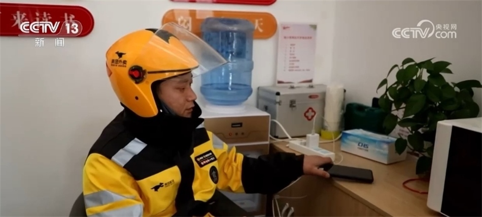 由于氣溫持續(xù)走低,外賣訂單量激增。在菏澤市定陶區(qū),當?shù)卮蛟炝?0家休息驛站,為外賣員、快遞員等戶外作業(yè)人員提供熱水、手機充電、熱飯就餐等服務。
