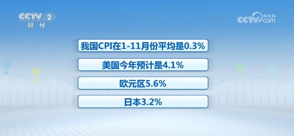 寧吉喆表示,消費(fèi)物價(jià)上漲率,也就是通脹率,我國CPI在1—11月份平均是0.3%,美國今年預(yù)計(jì)是4.1%,歐元區(qū)5.6%,日本3.2%。