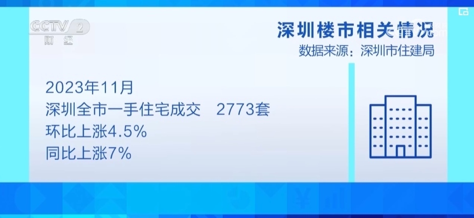 深圳市住建局?jǐn)?shù)據(jù)顯示,11月份,深圳全市一手住宅成交2773套,環(huán)比漲4.5%、同比漲7%。