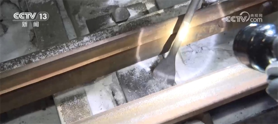 我在車站里看到不僅有給列車編組的司機(jī)、調(diào)度員,我還看到在鐵路的道岔還有很多工作人員正在做一些積雪清掃還有除冰的工作。我們可以湊近看一下,可以看到道岔這里現(xiàn)在是被凍住了,已經(jīng)沒法推動(dòng)這個(gè)鐵軌,而這的空間又非常小,所以只能靠這樣的小鏟子一點(diǎn)點(diǎn)鏟,才能把這塊兒的積雪和冰給清干凈。