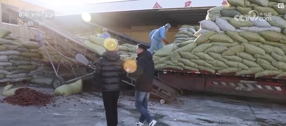 在楊安鎮(zhèn)這家加工香辛料的企業(yè),我們看到負(fù)責(zé)人蘇海濤正在卸載剛從越南新進口來的黑胡椒。