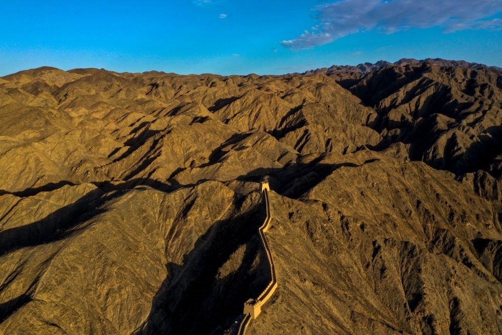 這是在甘肅省張掖市山丹縣拍攝的明長(zhǎng)城(無(wú)人機(jī)照片,2023年5月16日攝)。