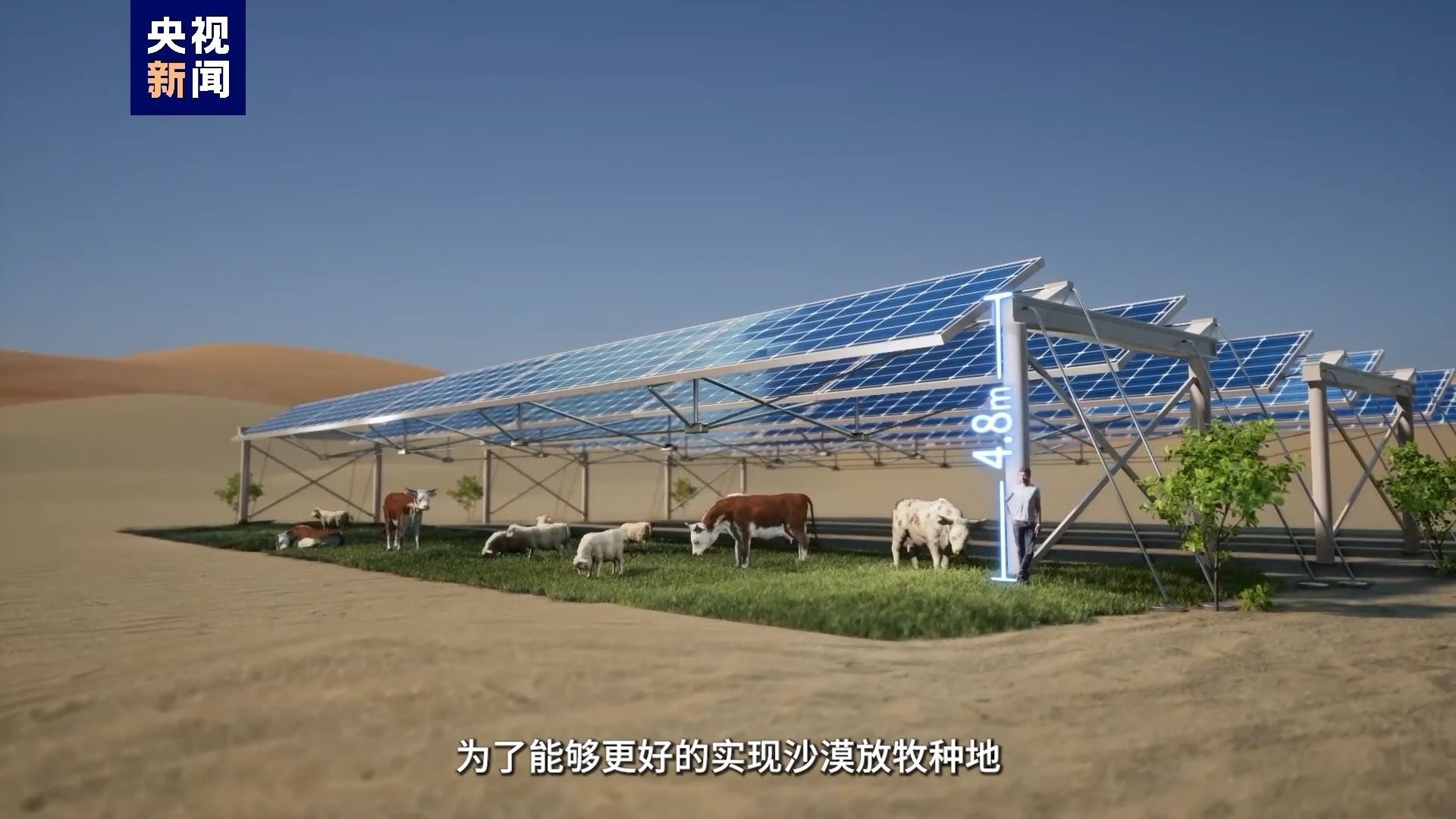 光伏板不僅能發(fā)電,還能遮擋一定的陽(yáng)光照射,減少了下面土壤的水分蒸發(fā),為植物的生長(zhǎng)提供了有利條件,為了能夠更好地實(shí)現(xiàn)沙漠放牧種地,會(huì)在建設(shè)前規(guī)劃光伏支架的高度和跨度,比如這里是燒烤區(qū)(牛羊放牧區(qū)),這里是沙拉區(qū)(蔬果種植區(qū)),這里是養(yǎng)生區(qū)(中藥種植區(qū)),接下來(lái)沙漠里還會(huì)有綠化帶區(qū),已經(jīng)安排上了。
