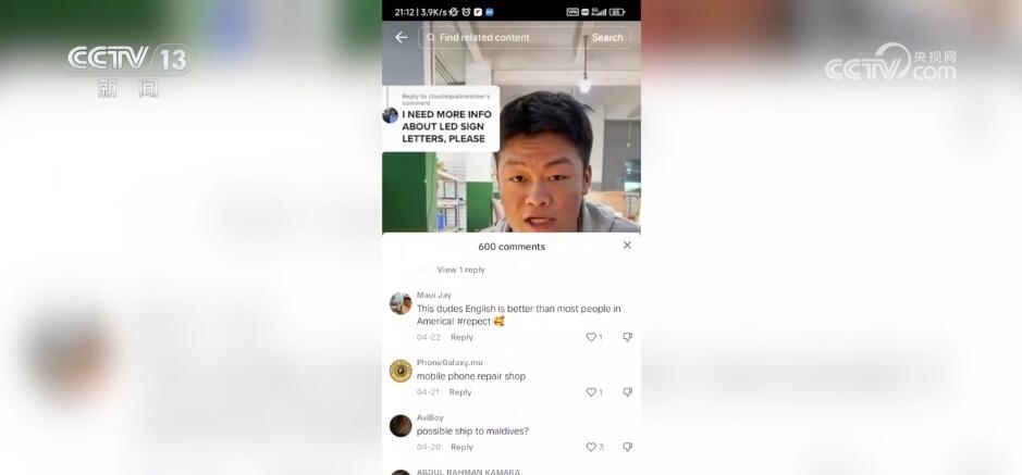 央視網(wǎng)消息:視頻里這個自稱“Tony”的小伙名叫竹宇,今年24歲。雖說講著一口地道、流利的英語,但卻打小是在廣東東莞長大的,沒有任何國外留學(xué)或生活的經(jīng)歷。他現(xiàn)在主要的工作,就是通過拍攝這些短視頻為廣州白云區(qū)一家生產(chǎn)燈牌的外貿(mào)企業(yè)招攬海外客戶,效果怎么樣?一起來看。