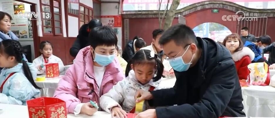 在四川江安,大家走進博物館,體驗制作手工燈籠。在志愿者的指導下,家長和孩子們粘燈籠紙、拼插、貼紙花,不一會兒,一個個富有新年元素的手工燈籠展現(xiàn)在眼前。
