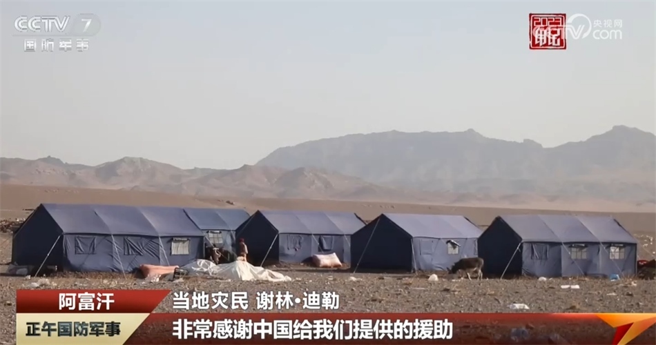 2023年10月,阿富汗赫拉特省連續(xù)發(fā)生多次6級以上強震,中國空軍兩架運-20運輸機搭載著中國政府和中國紅十字會提供的近50噸人道主義救援物資飛往阿富汗。在受地震影響最嚴(yán)重的赫拉特省津達(dá)詹區(qū),一頂頂中國援助的藍(lán)色帳篷挺立在廢墟旁的空地上。