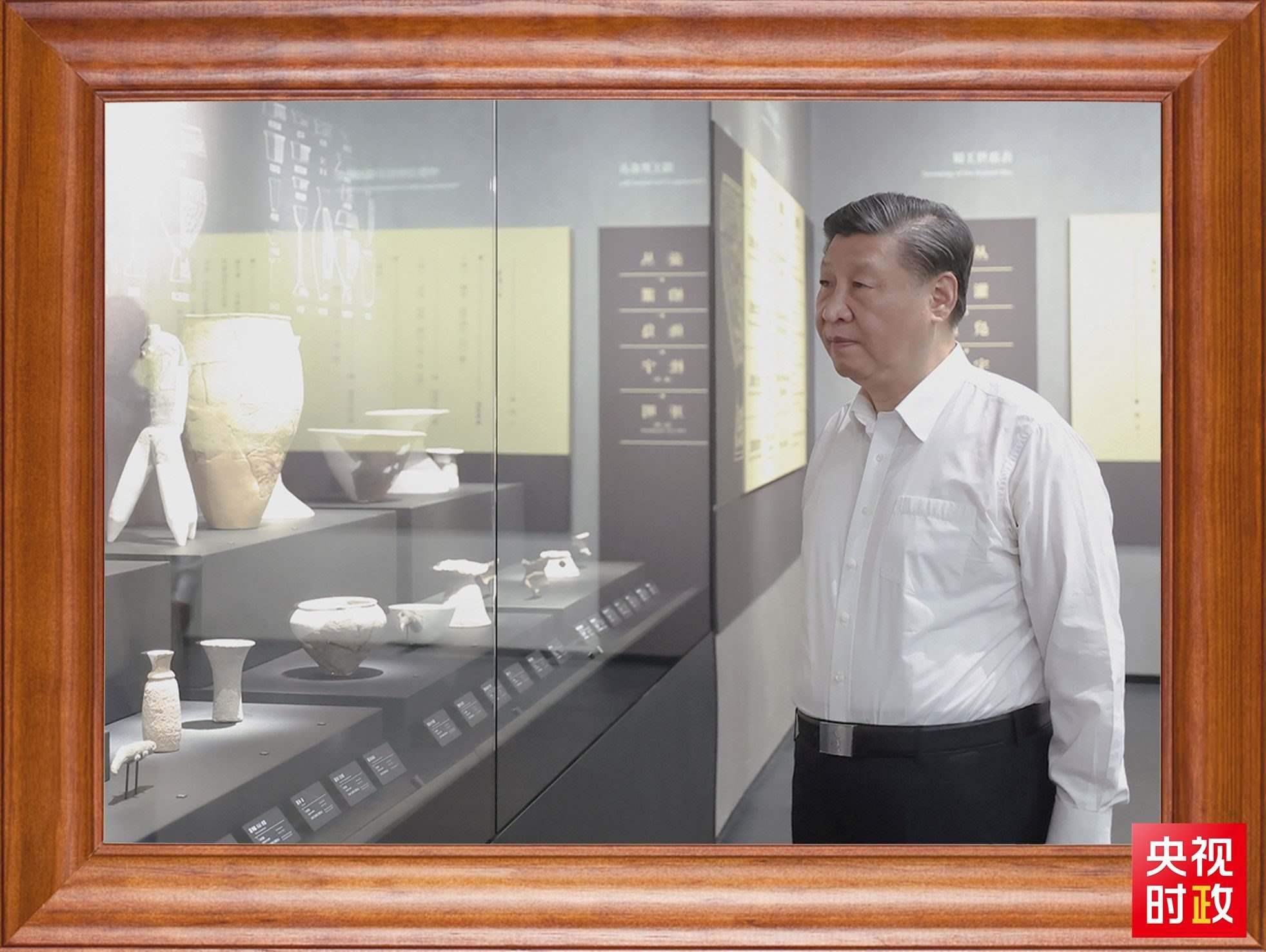 在習近平總書記的書架上,有這么一張照片,記錄著他的文化足跡——2023年7月26日,總書記來到位于四川省德陽市廣漢市的三星堆博物館新館,了解三星堆遺址發(fā)掘歷程和古蜀文明成果。