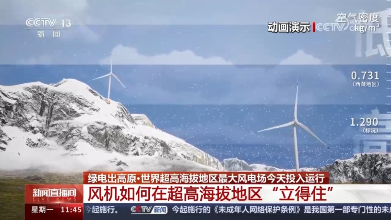 央視網(wǎng)消息:1月1日,世界超高海拔地區(qū)最大的風(fēng)力發(fā)電廠——那曲歐瑪亭嘎100兆瓦風(fēng)電項(xiàng)目正式投入運(yùn)行,一年可以向那曲市送電2億度,滿足23萬人一年的用電需求,還能減排二氧化碳20萬噸。