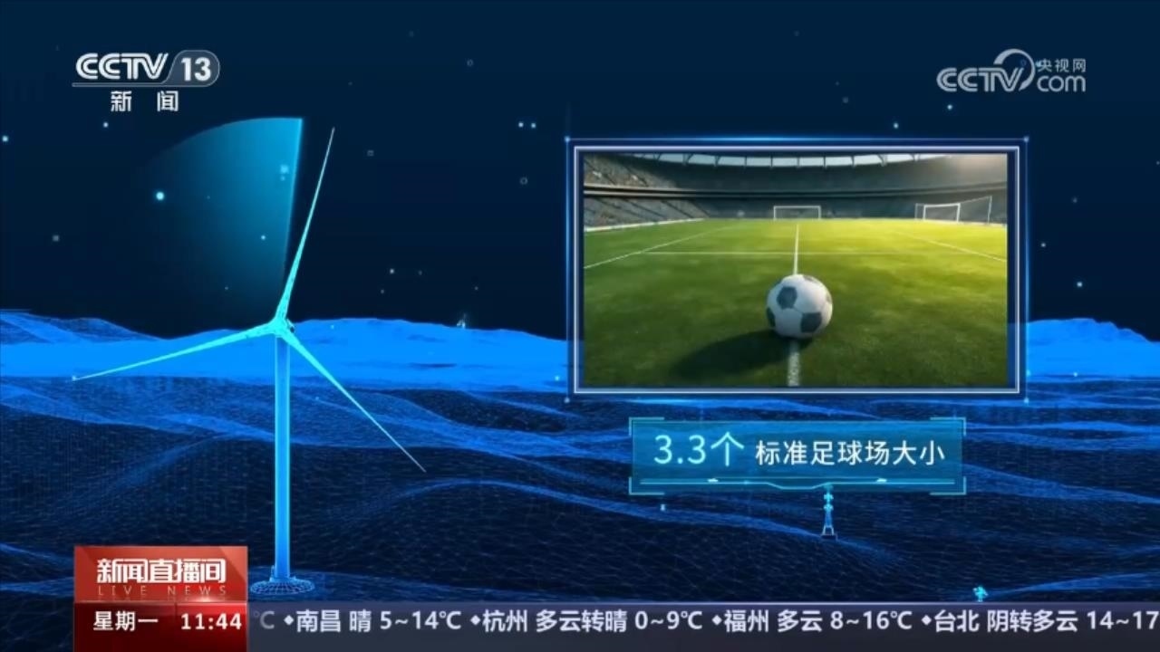 173米,是歐瑪亭嘎風(fēng)電場的風(fēng)機(jī)葉片直徑,其掃風(fēng)面積相當(dāng)3.3個(gè)標(biāo)準(zhǔn)足球場大小。