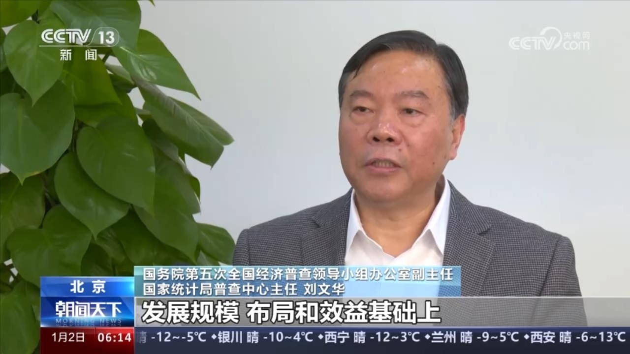 國務(wù)院第五次全國經(jīng)濟(jì)普查領(lǐng)導(dǎo)小組辦公室副主任、國家統(tǒng)計(jì)局普查中心主任劉文華介紹,第五次全國經(jīng)濟(jì)普查是新征程開局起步關(guān)鍵時(shí)期開展的一次重大國情國力調(diào)查,承載著摸清我國“經(jīng)濟(jì)家底”、反映高質(zhì)量發(fā)展進(jìn)展的重要任務(wù),為制定實(shí)施國民經(jīng)濟(jì)社會(huì)發(fā)展規(guī)劃、服務(wù)推進(jìn)中國式現(xiàn)代化提供統(tǒng)計(jì)信息支撐。