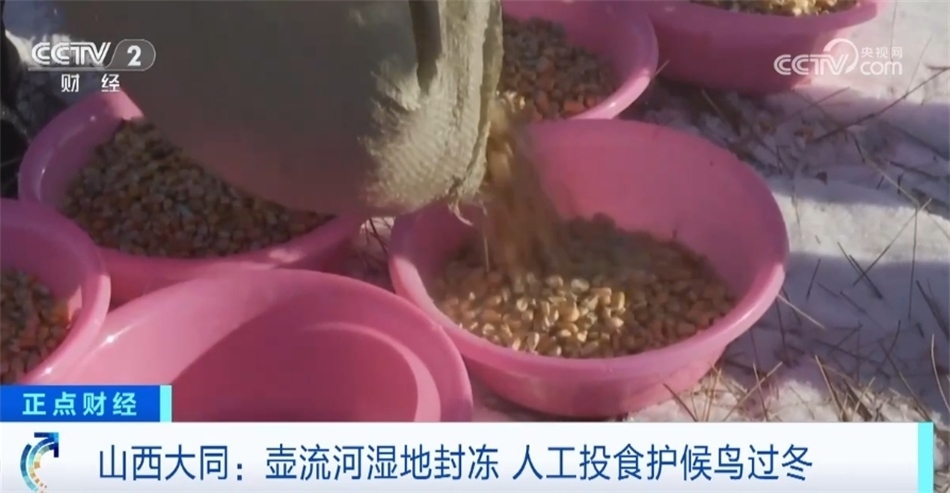 山西大同:壺流河濕地封凍 人工投食護(hù)候鳥過(guò)冬