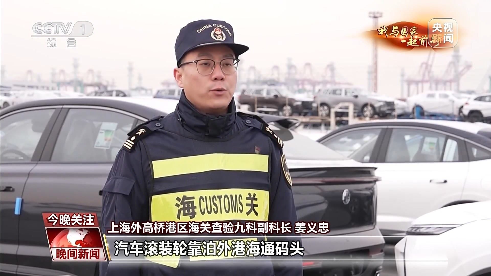 上海外高橋港區(qū)海關(guān)查驗(yàn)九科副科長 姜義忠:2023年平均每天都有2—3艘汽車滾裝輪靠泊外港海通碼頭。汽車出口可以實(shí)現(xiàn)“即報(bào)即放”“即查即放”,確保汽車出口“零延時(shí)”。