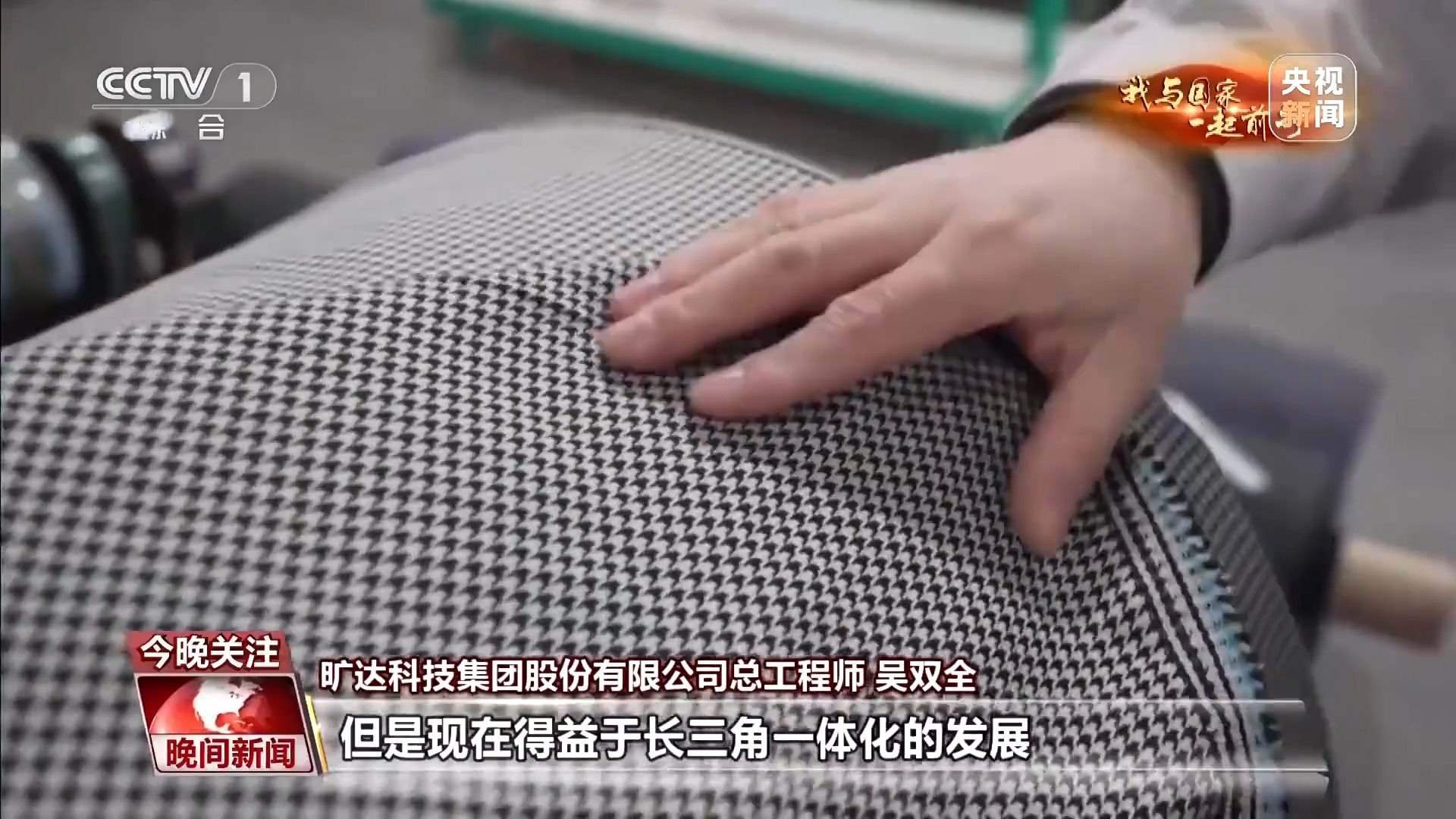 曠達(dá)科技集團(tuán)股份有限公司總工程師 吳雙全:這款面料,三年前我們開發(fā)這款產(chǎn)品,可能需要6到12個(gè)月的時(shí)間,但是現(xiàn)在得益于長三角一體化的發(fā)展和我們的產(chǎn)業(yè)鏈完備的這樣一個(gè)優(yōu)勢,從接到客戶需求到最終批量供貨,我們只需要3個(gè)月的時(shí)間。