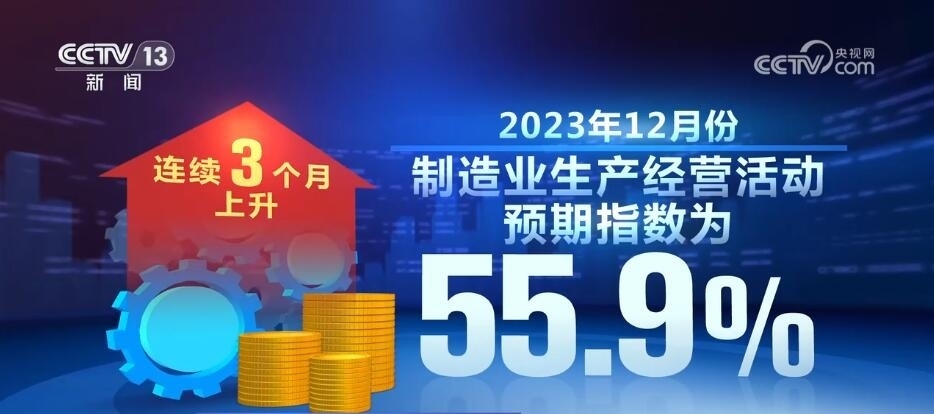 數(shù)據(jù)顯示,2023年12月份,制造業(yè)生產(chǎn)經(jīng)營活動(dòng)預(yù)期指數(shù)為55.9%,連續(xù)3個(gè)月上升,表明制造業(yè)企業(yè)對市場發(fā)展信心不斷增強(qiáng)。2023年12月份,高技術(shù)制造業(yè)和裝備制造業(yè)采購經(jīng)理指數(shù)分別為50.3%和50.2%,繼續(xù)保持?jǐn)U張。