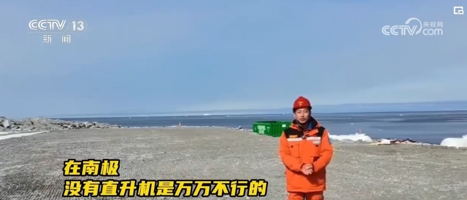 總臺央視記者 李寧:主站的下方就是正在建設(shè)中的停機坪。由于南極獨特的地理環(huán)境,對于直升機的需求非常大,無論是運貨還是運人都離不開直升機。因此,停機坪也是每個科考站必備的基礎(chǔ)設(shè)施。這里是距離新站大概有1公里的一個山頭,也是未來能源站所在的區(qū)域。目前,這個地方正在進行新能源的測試,這里面有光伏發(fā)電、風(fēng)力發(fā)電兩種方式,建成之后新站60%的能源供應(yīng)都將由新能源來完成。