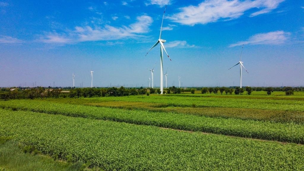 走進小王莊鎮(zhèn)李官莊村,連片的農(nóng)田之間,最顯眼的是一臺臺高聳入云的風(fēng)力發(fā)電機,如同一只只白鳥展開巨大的翅膀,葉片隨風(fēng)緩緩轉(zhuǎn)動。