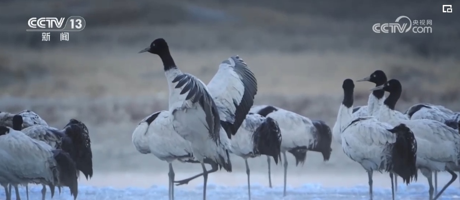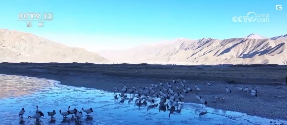 西藏的越冬水鳥主要有黑頸鶴、斑頭雁、赤麻鴨等。監(jiān)測隊設立了505個觀測點,共記錄調(diào)查軌跡數(shù)407條,觀測到水鳥45種。其中,包括兩種國家一級保護動物,分別是黑頸鶴和白尾海雕。7種國家二級保護動物,分別是灰鶴、鴛鴦、白額雁、斑頭秋沙鴨、黑頸鸊鷉、角鸊鷉、花臉鴨。還有重要生態(tài)、科學、社會價值的陸生野生動物36種。