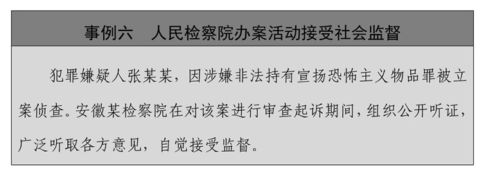 ——拓寬監(jiān)督渠道。中國(guó)執(zhí)法司法辦案機(jī)關(guān)持續(xù)拓寬監(jiān)督渠道,通過(guò)多種方式強(qiáng)化社會(huì)監(jiān)督,不斷增強(qiáng)執(zhí)法司法透明度,防止執(zhí)法權(quán)、司法權(quán)被濫用。人民法院通過(guò)審判流程信息公開(kāi)、裁判文書(shū)公開(kāi)、執(zhí)行信息公開(kāi)、庭審公開(kāi)等加大司法公開(kāi)力度,及時(shí)公布法院審判、執(zhí)行工作情況。人民檢察院推行檢務(wù)公開(kāi),依法公開(kāi)與檢察職權(quán)相關(guān)的活動(dòng)和事項(xiàng),并充分運(yùn)用現(xiàn)代化信息手段,建立檢務(wù)公開(kāi)信息平臺(tái),設(shè)置電子顯示查詢(xún)?cè)O(shè)備,開(kāi)通網(wǎng)站、網(wǎng)頁(yè)等,方便檢務(wù)信息查詢(xún)。公安機(jī)關(guān)推行警務(wù)活動(dòng)公開(kāi),行政處罰遵循公開(kāi)原則,執(zhí)法過(guò)程、處罰結(jié)果自覺(jué)接受社會(huì)和公民的監(jiān)督。司法行政機(jī)關(guān)推行獄務(wù)公開(kāi),將監(jiān)獄執(zhí)法工作的條件、程序、結(jié)果依法向社會(huì)公開(kāi),加強(qiáng)監(jiān)獄工作的規(guī)范化、制度化、法治化建設(shè),規(guī)范執(zhí)法行為。