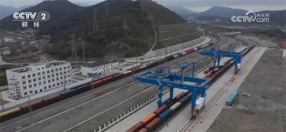 總臺(tái)央視記者 馬佳倫:這里是位于寧波舟山港北侖第一集裝箱碼頭的作業(yè)區(qū)。此刻一輛來自金華,載五十節(jié)車廂,共計(jì)100標(biāo)箱量的列車正在進(jìn)站。去年底甬金鐵路開通運(yùn)營以來,寧波舟山港新增一條重要疏運(yùn)通道,世界第一大港寧波舟山港與世界小商品之都義烏(間)運(yùn)行效率大大提升。