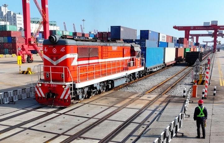 水路大進(jìn)大出,鐵路風(fēng)馳電掣。元旦當(dāng)天,連云港新年開行的首趟中歐班列載著汽車配件、家用電器等,從中哈物流合作基地出發(fā),駛往中亞國家;同日,南通海安物流基地內(nèi),一列滿載貨物的班列鳴笛啟程開往越南河內(nèi)。有去有回,不久之后,“鋼鐵駝隊(duì)”會(huì)把來自歐洲、中亞和東南亞的機(jī)械、木材等運(yùn)回中國,開啟新一輪國際循環(huán)。